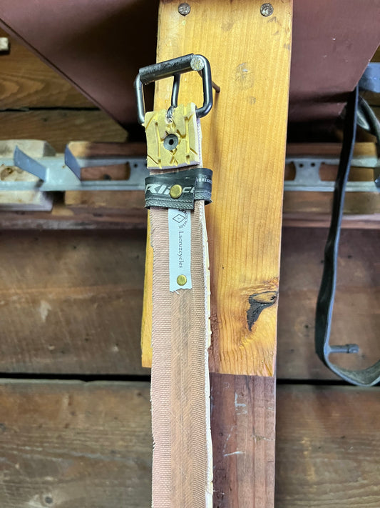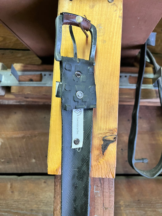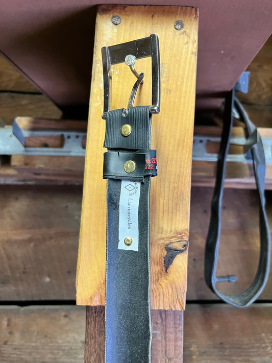 A visually striking image showcasing a fashionable belt made out of recycled bicycle tires.