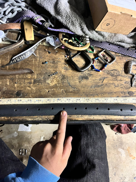 A visually striking image showcasing a fashionable belt made out of recycled bicycle tires.